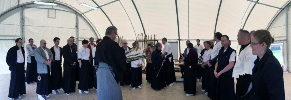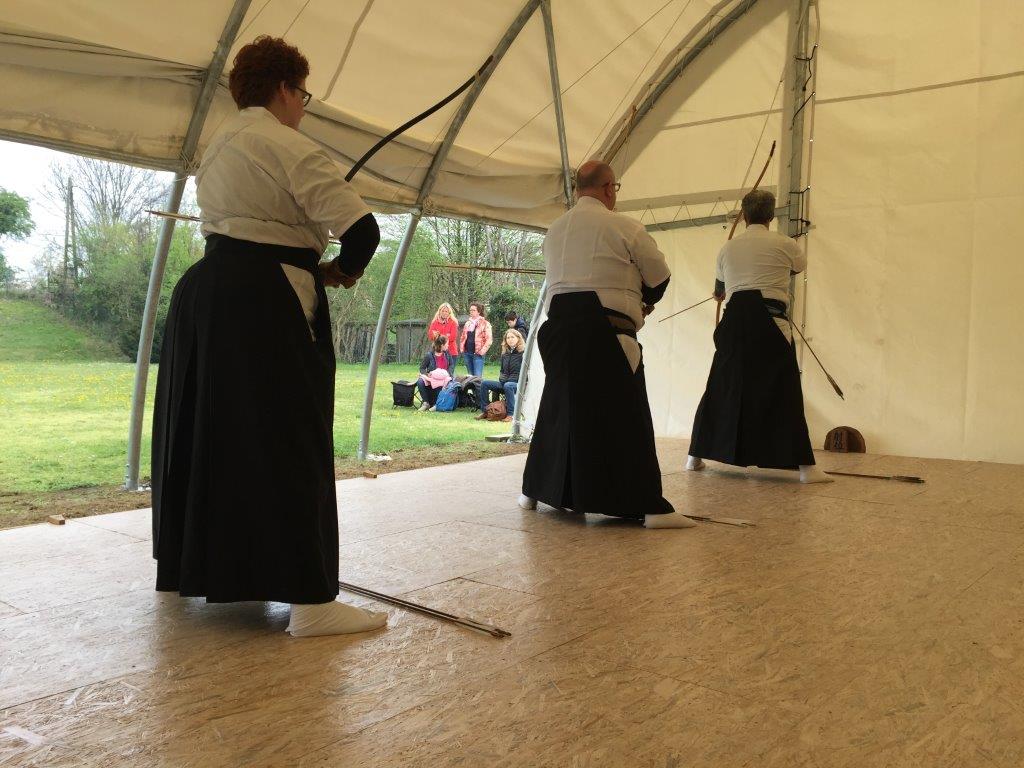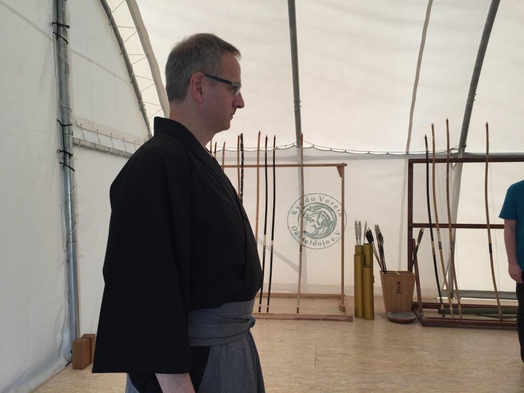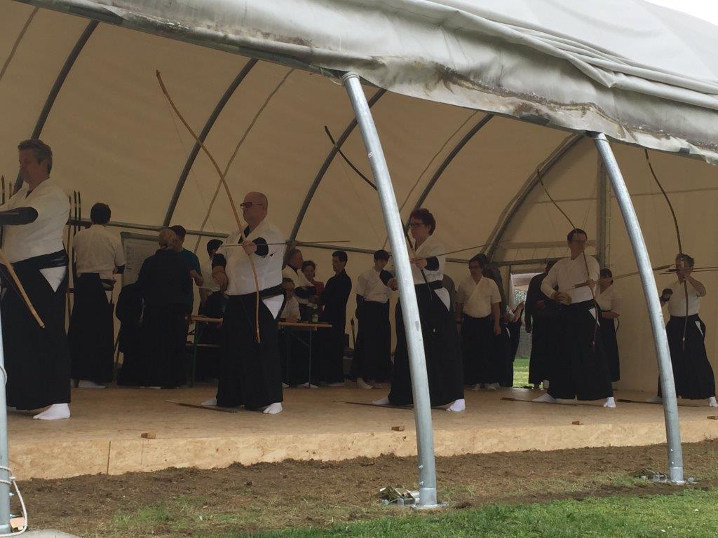 Nach dem Yawatashi durch die Kampfrichter (Marco, Johannes und Shige) begann die Mannschaftsmeisterschaft. Insgesamt 12 Mannschaften haben drei Durchgänge je 4 Pfeile geschossen. Unsere Mannschaft (Christoph, Michael und Irmgard) hat punktgleich den 8. Platz mit anderen Mannschaften geteilt. Die besten drei Mannschaften waren Punktgleich und mussten daher noch ins Stechen. Nach zwei Durchgängen hat die Mannschaft Düsseldojo den 1. Platz, Mannschaft Aachen 1 den 2. Platz und Mannschaft „Gemischt 1“ den 3. Platz belegt. Herzlich Glückwunsch!