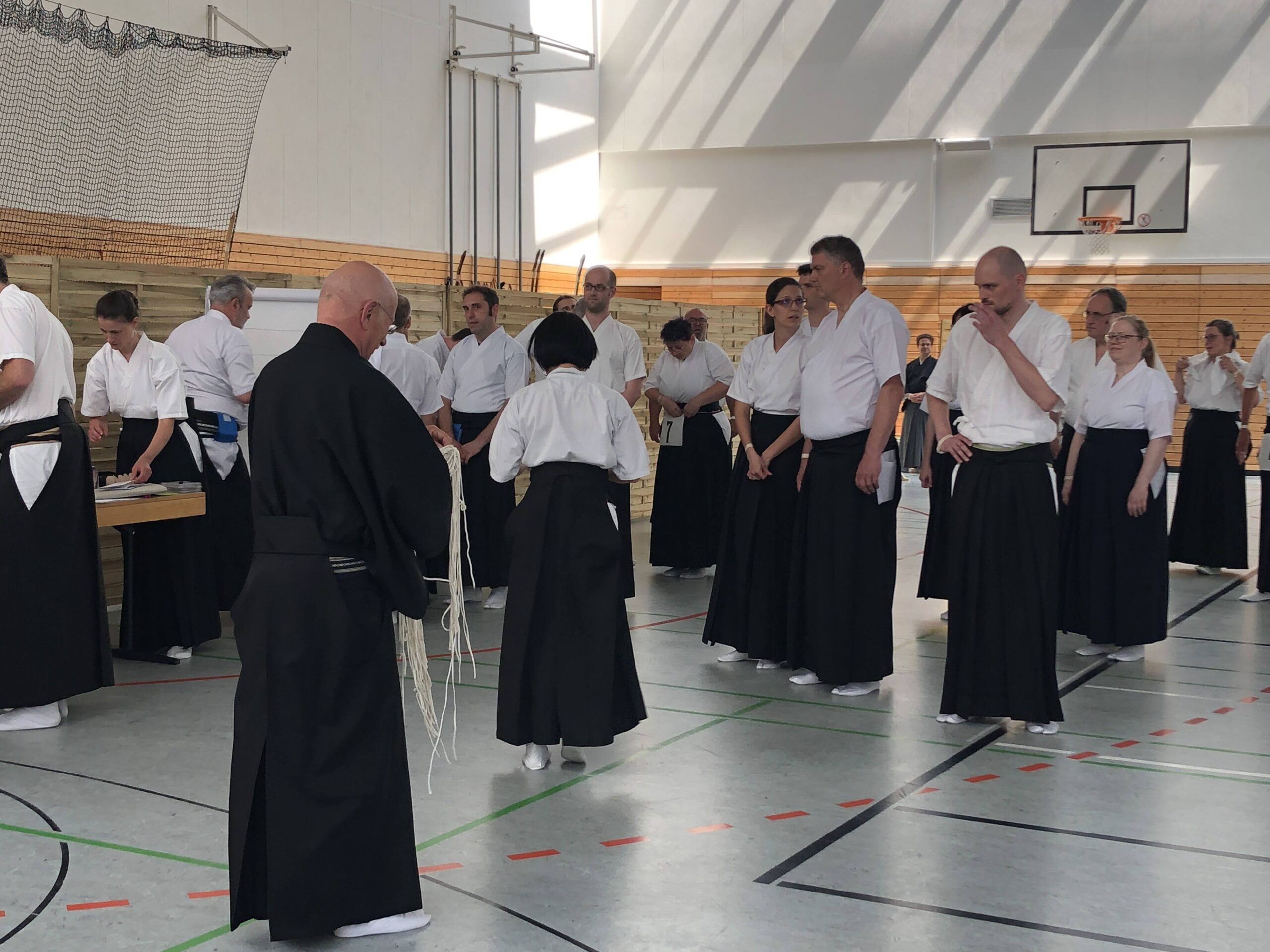 Am Wochenende 25./26. Juni fand die deutsche Meisterschaft in Berlin statt. Aus unserem Verein haben drei Teilnehmer (Beate, Michael, Shige) die Veranstaltung teilgenommen und alle die Sempai-Meisterschaft angetreten. In diesem Jahr haben die Teilnehmer insgesamt 10 Pfeile geschossen. zum Schluss hat Shige den 1. Platz mit 8/10 Treffer erreicht. Es war richtig warm und feucht in der Halle (gefühlte über 35 Grad) deshalb waren alle Teilnehmer erfolgreich im Kimono durchzuhalten.
